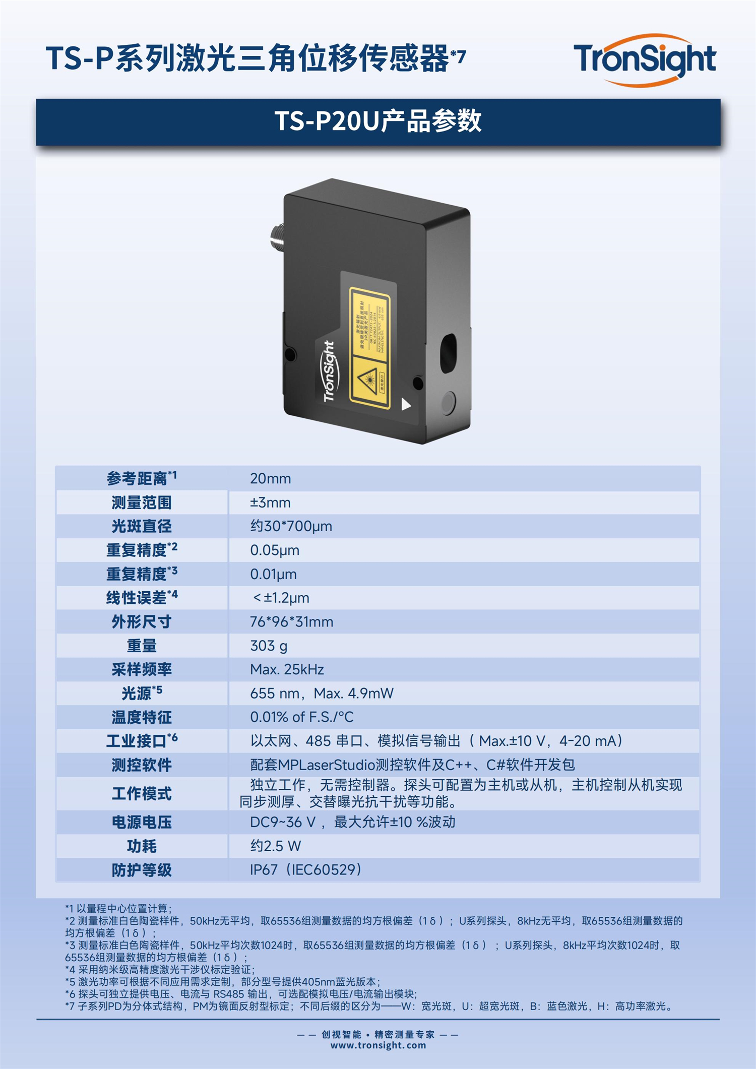 工業(yè)接口 以太網(wǎng)、485 串口、模擬信號(hào)輸出(Max.±10V,4-20mA) 防護(hù)等級(jí) IP67(IEC60529) 電源電壓 DC 9~36V ,最大允許±10%波動(dòng) 測(cè)控軟件 TSLaserStudio測(cè)控軟件,C++、C#軟件開發(fā)包